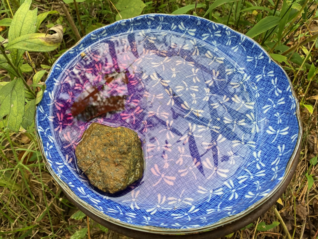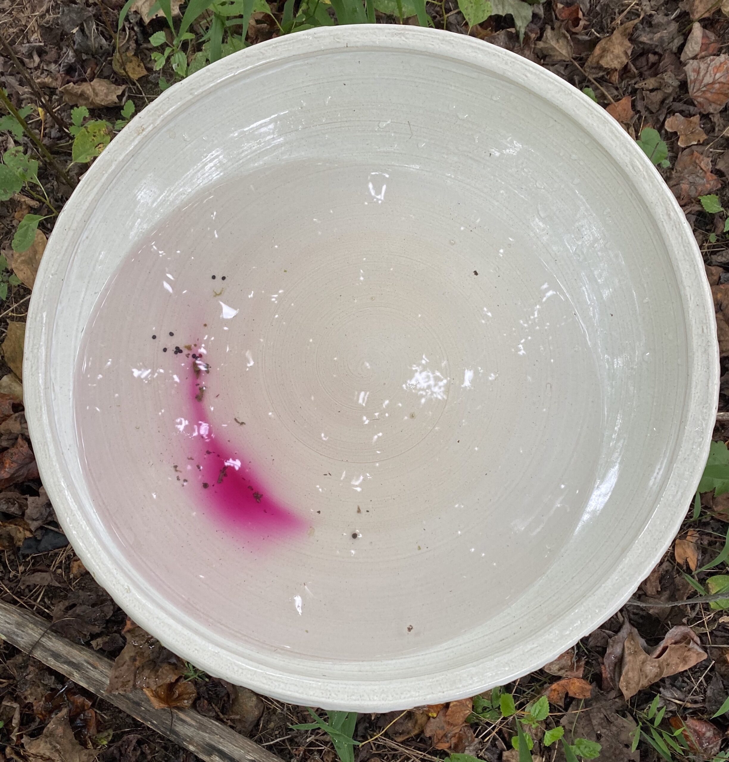 Even when we don’t see the catbirds, we hear them, and they leave their mark. Almost every day at this time of year, I find the evidence of their bacchanalian feasting: purple blobs on the edges of the birdbaths, which pool with hot-pink pokeberry juice diffused from their droppings. Who knew poop could be so pretty? Certainly earlier humans on these lands understood the powerful beauty of pokeberry juices, using them in dyes and later as inks. The plants were longtime partners with people, providing food, medicine and art supplies.