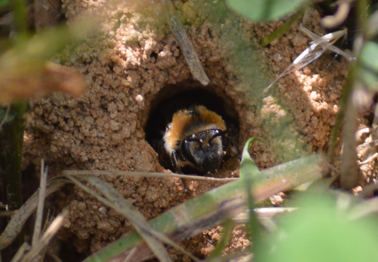 I’d read about it, written about it, and seen it from a distance in the past. But until this summer, I’d never actually gotten close enough to photograph a ground-nesting bee emerging from her hole, gathering pollen, and returning to her nest repeatedly. That seems strange in retrospect, since these soil dwellers are everywhere, comprising about 70 percent of our 4,000 or so native bee species in North America. They’re generally small and solitary, so it takes patience and a zoom lens to stake out such minifauna. One helpful clue to their whereabouts is the presence of mounds that look like anthills. Though they work alone, many bees create these nests near each other; I found mine along the edge of a mowed path that runs through our meadow down to the compost pile.