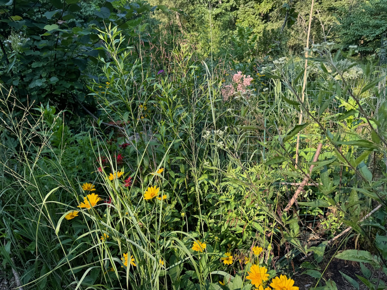 When deer passed through my habitat this summer, they ate the tops off the brown-eyed Susans. They browsed low branches of walnuts and tips of swamp milkweed. They pruned black raspberries, sumacs, sassafras, shrubby St. John’s worts, common evening primroses, tall phlox, violets, fleabanes, Jerusalem artichokes, elderberries and white wood asters. They munched on pokeweed and jewelweed, wild lettuces and wild strawberry.