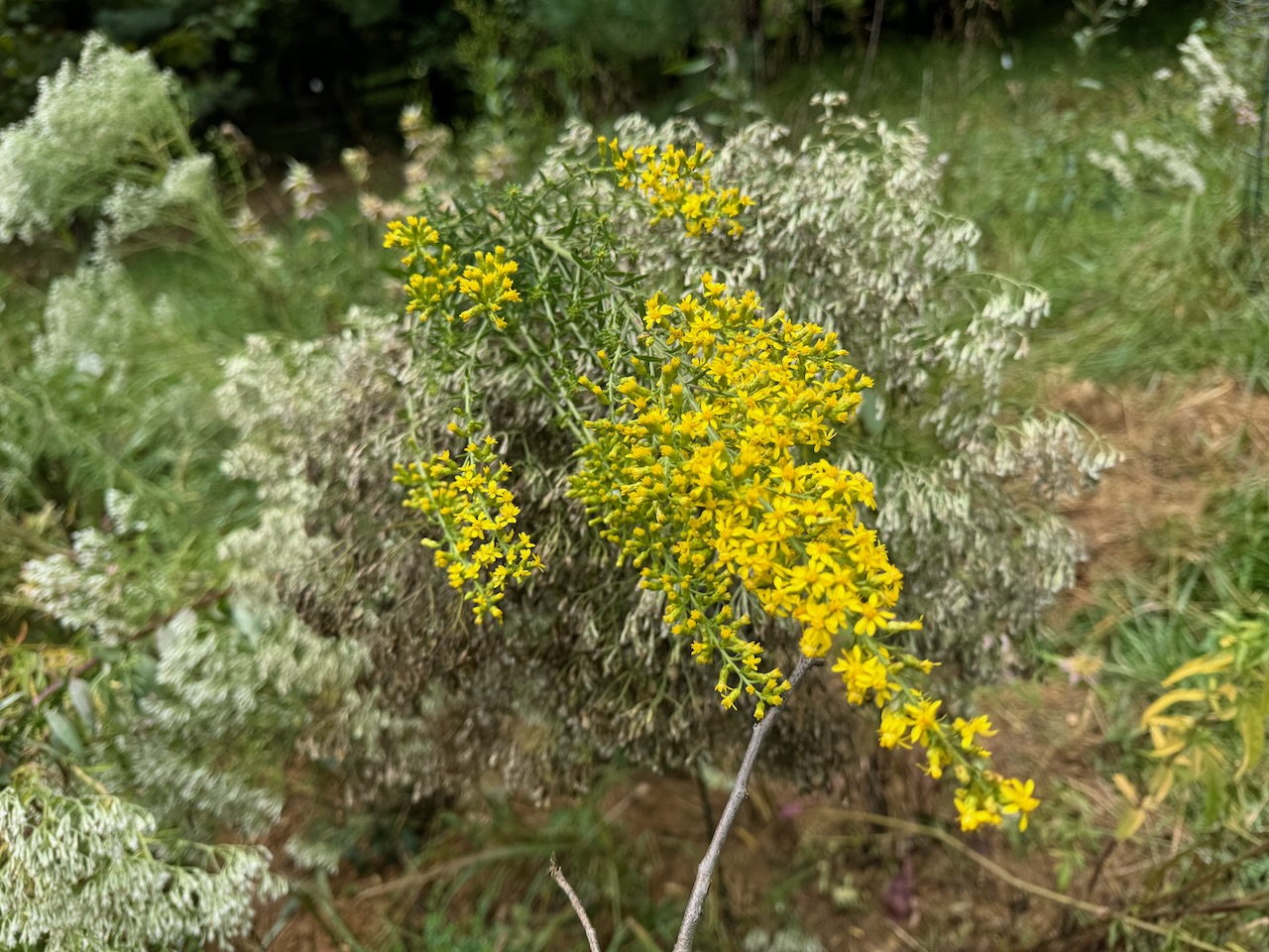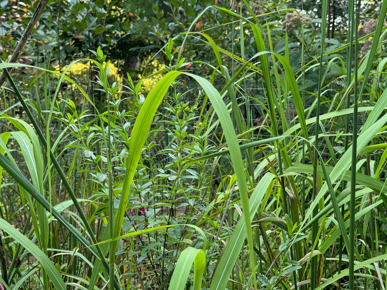 Burnweed, on the other hand, is less appealing to deer but can serve as a protector plant, its lush growth shielding neighbors nearby. Wasps, bees and other pollinators visit the tiny flowers while the leaves and tall stems block the view of more tender plants or obscure access to them. This season, burnweed helped me grow woodland sunflowers for the first time in many years. Though buds were nipped repeatedly in spring and early summer, my new transplants are finally blooming in the burnweed’s embrace.