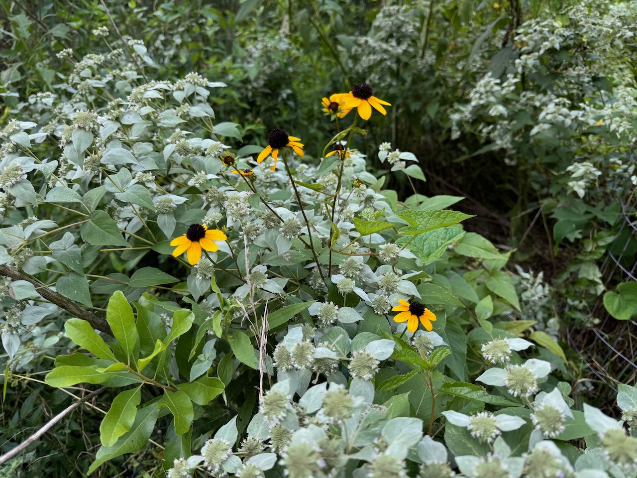 Less palatable wildflowers can also form a barrier around tastier ones. Species in the mint family—especially mountain mints and wild basil but also bee balm, wild bergamot and lyreleaf sage—are carefree spreaders with high pollinator value and little appeal to mammals due to their chemical makeup. Plants like late boneset and blue mistflower usually go untouched because they contain pyrrolizidine alkaloids, compounds that can be hepatotoxic, or liver-damaging to mammals. In our garden, wingstem is also rarely if ever eaten.