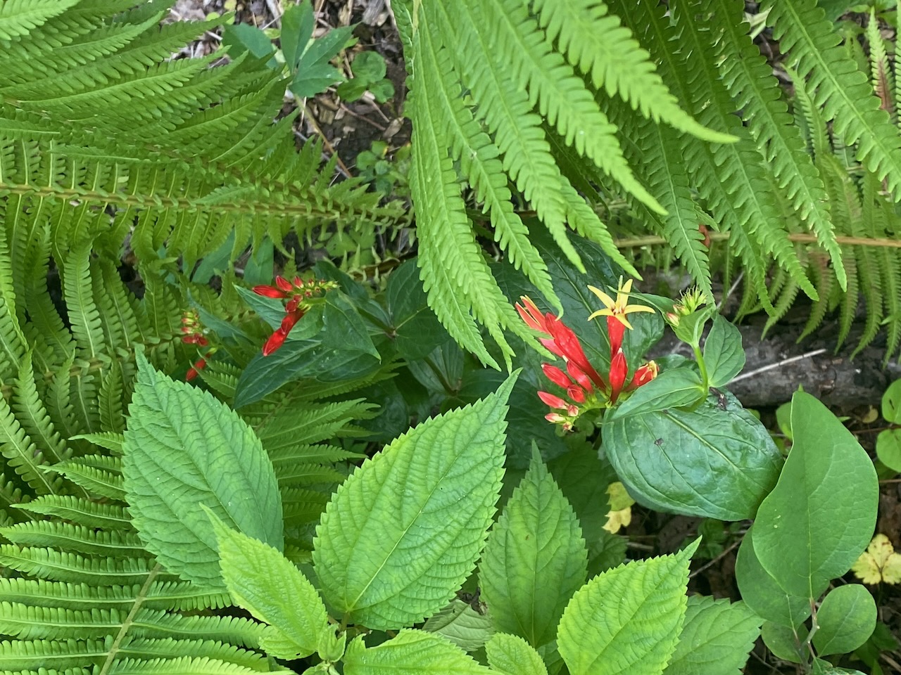 And when deer passed through my habitat, here’s what they didn’t eat (at least not this year!): They didn’t eat wild senna, blue mistflower, boneset, common milkweed, mountain mint, wrinkleleaf goldenrod, aromatic asters, or scarlet bee balm. They didn’t bother with Virginia bluebells, golden ragwort, wild ginger, wild bergamot, sneezeweed, false nettle, false sunflowers, penstemons, giant yellow hyssop, purple hyssop, blue vervain, elephant’s foot, ironweed, blue waxseed, yuccas, ostrich ferns, hayscented ferns, royal ferns, cinnamon ferns or any other ferns. They left alone the beautyberries, coralberries, bayberries, hollies, Eastern red cedars, coral honeysuckle and wingstems. If they ate the Virginia creeper vines, I didn’t notice, though I did see a rabbit chowing down on one I’d left as a groundcover in the front garden.