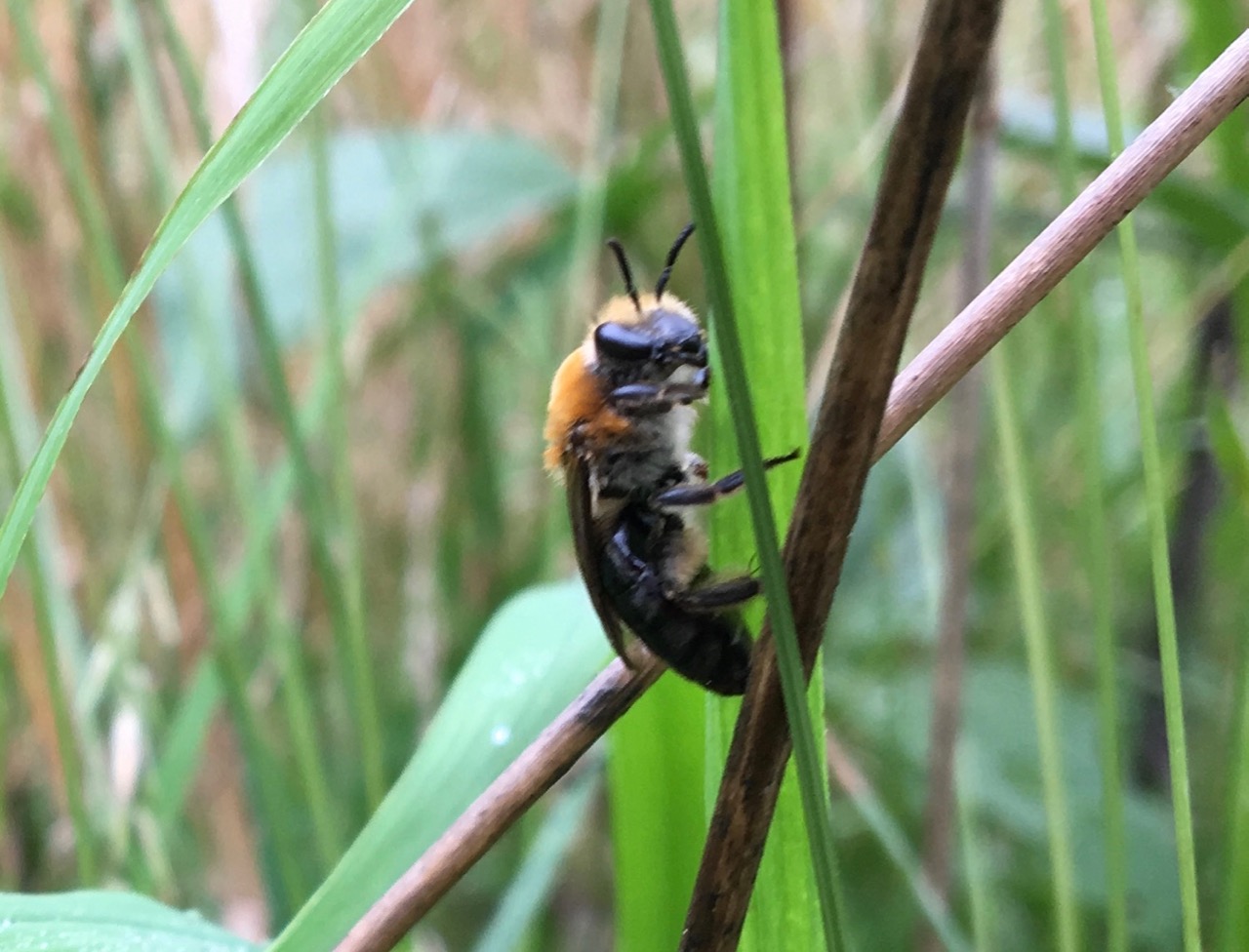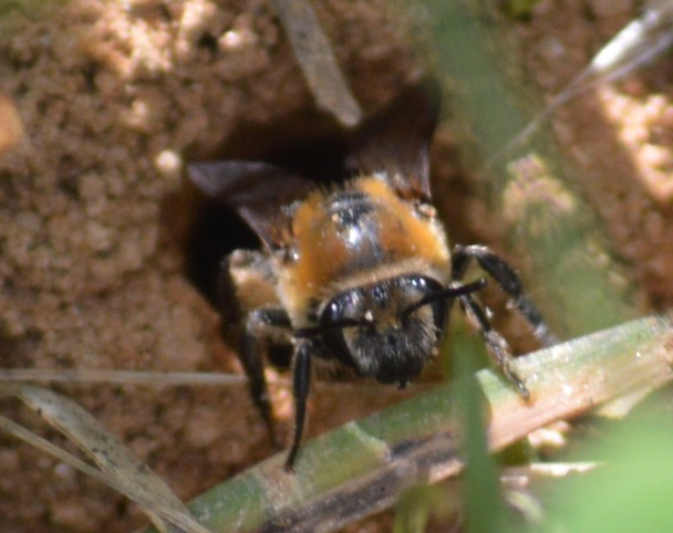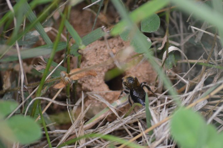 I’d read about it, written about it, and seen it from a distance in the past. But until this summer, I’d never actually gotten close enough to photograph a ground-nesting bee emerging from her hole, gathering pollen, and returning to her nest repeatedly. That seems strange in retrospect, since these soil dwellers are everywhere, comprising about 70 percent of our 4,000 or so native bee species in North America. They’re generally small and solitary, so it takes patience and a zoom lens to stake out such minifauna. One helpful clue to their whereabouts is the presence of mounds that look like anthills. Though they work alone, many bees create these nests near each other; I found mine along the edge of a mowed path that runs through our meadow down to the compost pile.